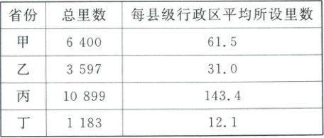 12.C【解析】里甲制度按一定人口规模等设置基层单位,经济发达、人口密集的地区里的数量会较多。浙江在明朝是经济发达、人口众多的省份,丙居四者之首,故选C项;甲可能对应山东等较为发达省,排除A项;乙反映人口稀少,似陕西等有一定经济和人口基础的内陆省,排除B项;丁最低,属更偏远地区如广西,排除D项。