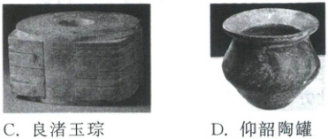 4.C【解析】良渚文化是新石器时代晚期长江下游的重要文化遗存,典型器物为玉器,而玉琮是中国古代祭祀礼器,常出现在高等级墓葬中,故C项正确;河姆渡骨耜、仰韶陶罐均为新石器时代前中期就存在的器物,一为农业生产工具,一为日常生活器物,排除A、D两项;司母戊鼎为商代器物,排除B项。