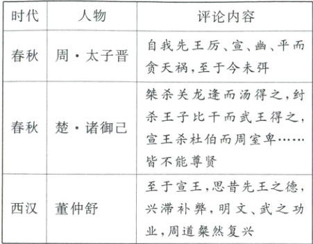 6. (2025 云南高考)下表所示是不同时期历史人物对周宣王的评论。下列说法正确的是(