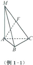 例 1 - 1 如图,在三棱锥 $M - ABC$ 中,$MA\perp$ 平面 $ABC$,$\triangle ABC$ 是边长为 $2$ 的正三角形,$MA = 2\sqrt{3}$,$F$ 是 $MC$ 的中点,求异面直线 $MB$ 与 $AF$ 所成角的余弦值。