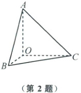2. (人 A 选必一 P41 练习 3)如图,在三棱锥 $O - ABC$ 中,$OA$,$OB$,$OC$ 两两垂直,$OA = OC = 3$,$OB = 2$,则直线 $OB$ 与平面 $ABC$ 所成角的正弦值是