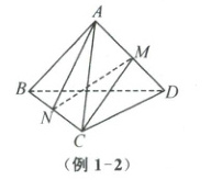 例 1 - 2 在三棱锥 $A - BCD$ 中,已知 $AB = AC = BD = CD = 3$,$AD = BC = 2$,$M$,$N$ 分别为 $AD$,$BC$ 的中点,则异面直线 $AN$,$CM$ 所成角的余弦值是