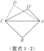 变式1 - 2$\frac{\sqrt{6}}{6}$【解析】由斯坦纳定理得$\overrightarrow{AC}·\overrightarrow{BD}=\overrightarrow{AC}·\overrightarrow{BD'}=2$,所以$\cos\langle\overrightarrow{AC},\overrightarrow{BD'}\rangle=\frac{2}{\sqrt{6}|\overrightarrow{BD'}|}$,当且仅当$BD'$最小时,直线$AC$与$BD'$所成角的余弦值最大.又$\cos\angle ACD=\cos\angle ACB$,所以在翻折过程中,$BD'$的最小值为$BC - CD'=2$,此时$D'$在$BC$上,且直线$AC$与$BD'$所成角的余弦值为$\frac{\sqrt{6}}{6}$.