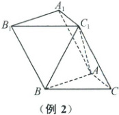 例 2 (2025·苏锡常镇二模)如图,在三棱柱 $ABC - A_{1}B_{1}C_{1}$ 中,$AB = 2$,$BC = 2\sqrt{2}$,$\angle ABC = 45^{\circ}$,$BC_{1}\perp AC$。
