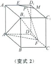变式 2 (2025·广州二模)如图,直四棱柱 $ABCD - A_{1}B_{1}C_{1}D_{1}$ 的底面 $ABCD$ 是菱形,$\angle BAD$ 为锐角,$E$,$F$ 分别为棱 $A_{1}D_{1}$,$CD$ 的中点,点 $M$ 在棱 $C_{1}D_{1}$ 上,且 $C_{1}M = 3MD_{1}$,$AA_{1} = AB = 4$,点 $P$ 在直线 $EM$ 上。