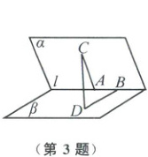 3. (人 A 选必一 P41 练习 1)如图,二面角 $\alpha - l - \beta$ 的棱上有两个点 $A$,$B$,线段 $BD$ 与 $AC$ 分别在这个二面角的两个面内,并且都垂直于棱 $l$。若 $AB = 4$,$AC = 6$,$BD = 8$,$CD = 2\sqrt{17}$,则平面 $\alpha$ 与平面 $\beta$ 的夹角为 (