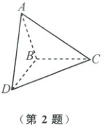 2.A[解析]设AB = 1,过点A在平面ABC内作AO⊥BC交CB的延长线于点O,连接DO,易知AO,OC,OD两两垂直.以O为坐标原点,$\overrightarrow{OD}$,$\overrightarrow{OC}$,$\overrightarrow{OA}$的方向分别为x轴、y轴、z轴的正方向,建立如图所示的空间直角坐标系,则
