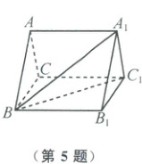 5. (人 A 选必一 P38 练习 3)如图,正三棱柱 $ABC - A_1B_1C_1$ 的所有棱长都为 $2$,则平面 $AA_1B$ 与平面 $A_1BC_1$ 夹角的余弦值为