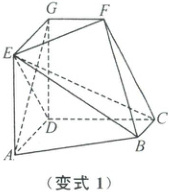 变式 1 如图,在多面体 $ABCDGEF$ 中,四边形 $ABCD$ 为直角梯形,且满足 $AD \perp CD$, $EG // AD$, $EG = AD = DC = DG = 2BC = 2$, $CD // FG$, $DG \perp$ 平面 $ABCD$.