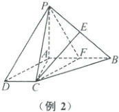 例 2 如图,在四棱锥 $P - ABCD$ 中, $PA \perp$ 平面 $ABCD$, $AB // CD$, $PA = AB = 2CD = 2$, $\angle ADC = 90^{\circ}$, $E$, $F$ 分别为 $PB$, $AB$ 的中点.