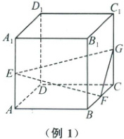 (2),延长GF交B₁B的延长线于点N,连接EN交AB于点P,连接PF,取D₁C₁的中点K,D₁A₁的中点J,连接KG,EJ,KJ,则KG//EP,EJ//GF,KJ//PF,平面EFG截正方体所得截面图形为正六边形EPFGKJ,且边长为$\frac{\sqrt{2}}{2}$,所以截面面积为6×$\frac{1}{2}$×$\frac{\sqrt{2}}{2}$×$\frac{\sqrt{2}}{2}$×$\frac{\sqrt{3}}{2}$ = $\frac{3\sqrt{3}}{4}$,故D不正确。