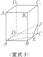 变式3 A [解析]如图,取B₁C₁的中点M,在BB₁上取一点H,使得B₁H = $\frac{1}{3}$BB₁,连接A₁M,HM,A₁H,则A₁M//AE,HM//EF,可证得平面AEF//平面A₁HM,即过点A₁平行于平面AEF的平面截四棱柱ABCD - A₁B₁C₁D₁所得图形是△A₁HM,其中B₁H = $\frac{1}{3}$BB₁ = 1,A₁H = $\sqrt{5}$,A₁M = $\sqrt{5}$,MH = $\sqrt{2}$,则cos∠MA₁H = $\frac{A₁M² + A₁H² - MH²}{2A₁M · A₁H}$ = $\frac{4}{5}$,所以sin∠MA₁H = $\frac{3}{5}$,从而S△A₁MH = $\frac{1}{2}$A₁M · A₁H · sin∠MA₁H = $\frac{1}{2} × \sqrt{5} × \sqrt{5} × \frac{3}{5} = \frac{3}{2}$。