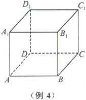 例4 B [解析]如图,在正方体ABCD - A₁B₁C₁D₁中,DC//A₁B₁。由直线A₁P与DC所成的角为$\frac{\pi}{6}$,知直线A₁P与直线A₁B₁所成的角为$\frac{\pi}{6}$,故动点P所围成的图形是高为$\sqrt{3}$,底面半径为1,母线长为2的圆锥侧面的四分之一,即动点P所围成的图形的面积为$\frac{1}{4}$×π×1×2 = $\frac{\pi}{2}$。