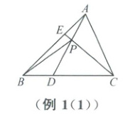 例 1 (1)(2025·如东质检)如图,在 $ \triangle ABC $ 中,$ D,E $ 分别为 $ BC $ 和 $ BA $ 的三等分点,点 $ D $ 靠近点 $ B $,点 $ E $ 靠近点 $ A $,$ AD $ 交 $ CE $ 于点 $ P $。设 $ \overrightarrow{BC}=\boldsymbol{a},\overrightarrow{BA}=\boldsymbol{b} $,则 $ \overrightarrow{BP}= $(