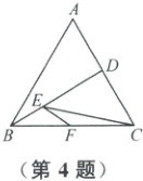 4. 如图,在边长为 $ 4 $ 的等边三角形 $ ABC $ 中,$ E $ 为中线 $ BD $ 上的动点,$ F $ 为 $ BC $ 的中点,则 $ \overrightarrow{FC}·\overrightarrow{FE} $ 的取值范围为