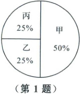1. (2025·龙岩 5 月质检)甲、乙、丙三家公司生产同一种产品.三家公司的市场占有率如图所示,且甲、乙、丙三家公司产品的次品率分别为 2%,1%和 $ m\% $.若市场上该产品的次品率为 2%,则 $ m = $ (