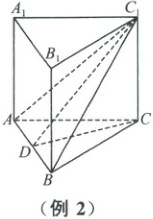 例2 如图,在正三棱柱$ABC - A_1B_1C_1$中,$AB = \sqrt{3}AA_1$,$D$为$AB$的中点.