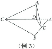 例3 (多选)如图,等边三角形 $ABC$ 的边长为 $4$,$E$ 为边 $AB$ 的中点,$ED\perp AC$ 于 $D$。将 $\triangle ADE$ 沿 $DE$ 翻折至 $\triangle A_1DE$ 的位置,连接 $A_1C$。在翻折过程中,下列说法正确的是(