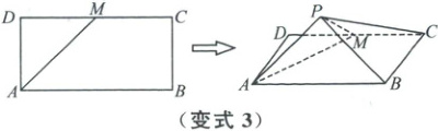 变式3 (多选)如图,在矩形 $ABCD$ 中,$AB = 2BC = 2$,$M$ 是边 $CD$ 的中点,将 $\triangle ADM$ 沿 $AM$ 翻折,直至点 $D$ 落在边 $AB$ 上。当 $\triangle ADM$ 翻折到 $\triangle PAM$ 的位置时,连接 $PB$,$PC$,则(