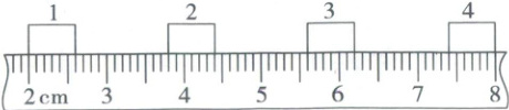 6. 如图所示是木块在水平面上运动时每隔相等时间曝光一次所得到的照片,曝光时间间隔为0.02s,木块从1位置到3位置运动的距离是