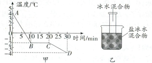 (4)如果将一个装有冰水混合物的试管放入正在熔化的盐冰水混合物中,如图乙所示,试管中的冰水混合物中的冰会