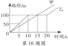 16. (双选)甲、乙两同学从同一地点同时向相同方向做直线运动,他们通过的路程随时间的变化关系如图所示,由图像可知(