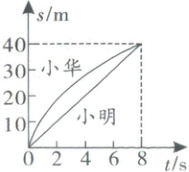 16.AD 【解析】A.由图像可知,小明的路程和时间关系图像是一条直线,表明路程和时间成正比,所以小明做的是匀速直线运动,而小华的路程和时间关系图像是一条曲线,表明路程和时间不成正比,所以小华做的不是匀速直线运动,故A错误,符合题意;B.由图像可知,两人同时出发,他们所用的时间都为8s,两人跑的全程都为40m,所以他们在前8s内的平均速度都为5m/s,故B正确,不符合题意;C.由图像可知,开始时小华在前面,即小明8s追上小华,故C正确,不符合题意;D.由图可知,小华的运动曲线的倾斜程度越来越小,即后来小华的速度小于小明的速度,故D错误,符合题意。故选AD。