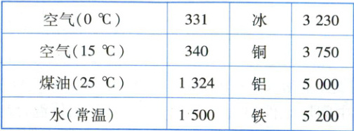 21. 我们知道,声音在不同介质中传播的速度不同。阅读下表,回答问题。已知在长为0.85km的空金属管一端敲击一下,在另一端先后听到两个声音,两个声音相隔2.33s(此时气温约为15℃)。
