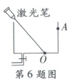 6. 如图所示,一支固定好的激光笔向空水槽底部固定点 O 打出一束激光。向水槽内加水使水面上升至 A 点,此时光斑在 O 点