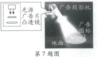7. 生活中我们经常可以看到的广告投影灯,其内部结构如图所示。其中广告片位于镜头