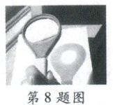 8. 为测量某凸透镜焦距,小芳先在纸上画一个小于透镜大小的圆环,如图所示,将凸透镜正对太阳光,在其下方距透镜8 cm处的白纸上的光斑恰好与圆环重合,当将该透镜远离白纸垂直移动4 cm时,此时白纸上的光斑再次与圆环重合,此过程中光斑的大小