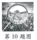 10. 如图所示是小明通过凸透镜看花朵成放大的像的情境,下列说法正确的是(