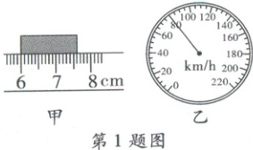 cm;乙图汽车速度仪表盘上所示的速度为 80