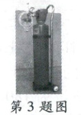 3. 高原地区空气稀薄,容易产生高原反应,初次进入高原地区需要携带氧气瓶防止缺氧,如图所示。若某氧气瓶的容积是4L,其中氧气密度是 $10kg/m^{3}$,使用了 $\frac{1}{4}$ 后,剩余氧气的质量