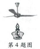 4. 如图所示,做一个纸风车。如果把风车放在点燃的酒精灯上方,风车能转动起来。这是因为点燃的酒精灯上方空气受热,热空气的密度