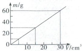 7. 小明分别测量了三块橡皮泥的质量和体积,并根据测量数据画出如图所示的图像,橡皮泥的密度是