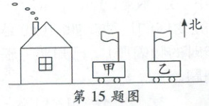 15.(双选)根据如图中的炊烟和汽车上的小旗,关于甲、乙两车相对房子的运动情况,下列说法正确的是 (