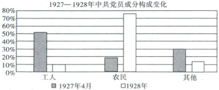 [例 1] 下面是 1927—1928 年中共党员成分构成变化示意图。造成这一变化的主要原因是( )