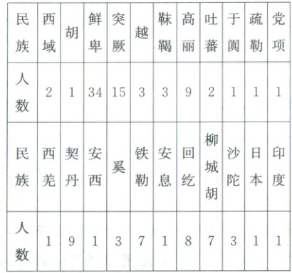8. (2025·黑龙江龙东地区高一期末·10)王桐龄在《中国民族史》中记载了关于唐代任用的少数民族及域外民族文臣武将官员,有史记录的总计为 122 人,民族的来源分布如下表。由此推断,这一时期( )
