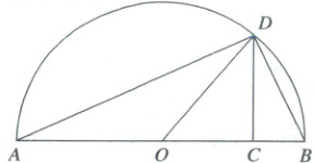 11.BCD 因为$AC = a$,$BC = b$,所以$OD = \frac{1}{2}(a + b)$,由题意得,$\angle ADB = 90^{\circ}$,由射影定理可得,$CD^{2} = AC · BC = ab$,由$OD \geqslant CD$,得$\frac{1}{2}(a + b) \geqslant \sqrt{ab}$,当且仅当$a = b$时取等号,A正确,B、C、D不正确.故选:BCD.