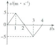 6.B 由图像可知,质点在$0 \sim 1 s$内加速度为$5 m/s^2$,在$1 \sim 3 s$内加速度为$-5 m/s^2$,在$3 \sim 4 s$内加速度为$5 m/s^2$,故A错误,B正确;$3 s$末$v = -5 m/s$,所以其大小为$5 m/s$,方向与选定的正方向相反,C错误;$2 s \sim 3 s$内与$3 s \sim 4 s$内速度的方向都是与选定的正方向相反,D错误。