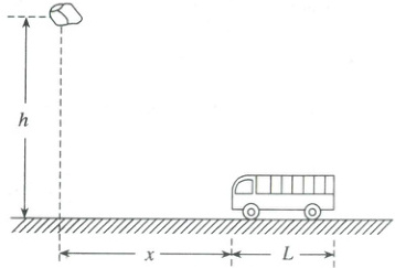 6. (2025·新疆乌鲁木齐 101 中高一期末)长为$L = 7.5\ m$的货车在一段平直的山路上以$v_{0}=10\ m/s$的速度匀速行驶,突然发现前方隧道口的正上方有石块落下。石块的运动可近似看作自由落体运动,石块距车头的水平距离为$x$,石块距车的高度为$h = 45\ m$,重力加速度取$g = 10\ m/s^{2}$,不计汽车的高度,则