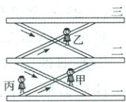 6. (多选)甲、乙、丙三人到某商场去购物,他们分别在三个都正常运行的电梯上向上一层楼或向下一层楼运动,如图所示,关于他们运动的说法正确的是( )