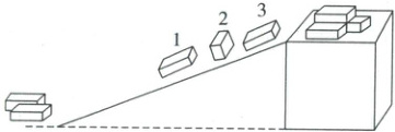 3. (2024·广西卷,2)工人卸货时常利用斜面将重物从高处滑下。如图,三个完全相同的货箱正沿着表面均匀的长直木板下滑,货箱各表面材质和粗糙程度均相同。若 1、2、3 号货箱与直木板间摩擦力的大小分别为 $ F_{f1} $、$ F_{f2} $ 和 $ F_{f3} $,则( )