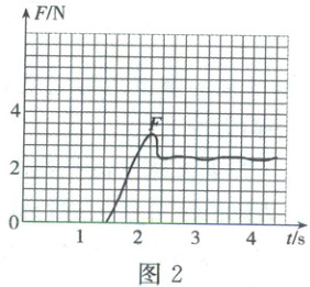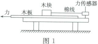 4.ACD 根据图2可知,木块与木板间的最大静摩擦力约为2N + 0.4×3N = 3.2N,故A正确;根据图2可知,木块与木板间的滑动摩擦力约为2N + 0.4×1N = 2.4N,故B错误;根据图1可知,在拉动木板的过程中,木块在棉线的拉力作用与桌面之间的相对位置始终不变,因此木块始终相对桌面静止,故C正确;根据上述可知,滑动摩擦力大小为2.4N,木块与木板间的动摩擦因数为0.3;根据平衡条件$F_{N}=mg,$根据滑动摩擦力公式$F_{f}=\mu F_{N},$代入数据解得m = 0.8kg,故D正确。