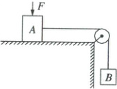 (2)F = 10N时,A与水平面之间的最大静摩擦力$F_{max2}=\mu(G_{A}+F)=0.4×(20 + 10)N = 12N$可见$F_{max2}>G_{B},$物体A仍然静止,受到静摩擦力的作用,其大小$F_{静}=G_{B}=10N。$