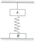6. 如图所示,用细线将 A 物体悬挂在顶板上,B 物体放在水平地面上,A、B 间有一劲度系数为 100 N/m 的轻弹簧,此时弹簧伸长了 2 cm,已知 A、B 两物体的重力分别是 3 N 和 5 N,则细线的拉力及 B 对地面的压力分别是( )