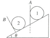 6. 如图所示,光滑斜面的倾角为 $ \theta $,有两个相同的小球,分别用光滑挡板 $ A $、$ B $ 挡住,挡板 $ A $ 沿竖直方向,挡板 $ B $ 垂直斜面。试求: