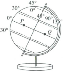 2.C 从P点沿0°经线向北爬行到北极点,路程为:$s_1 = \frac{1}{4} × 2\pi R = \frac{1}{2}\pi R$,然后又沿东经90°经线向南爬行到Q点,路程为:$s_2 = \frac{1}{4} × 2\pi R = \frac{1}{2}\pi R$,整个过程中的路程为:$s = s_1 + s_2 = \frac{1}{2}\pi R + \frac{1}{2}\pi R = \pi R$,从P点运动到Q点的整个过程位移大小等于P、Q两点间距离,由几何关系知:$x = \sqrt{2} · R$,故C正确,A、B、D错误。
