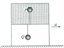5. 如图所示,某学习小组将两绿色乒乓球放在两塑料盒中,上面塑料盒盛满水,下面塑料盒是空的,然后用细线将乒乓球分别系于塑料盒的上、下底部,当塑料盒静止时,细线均伸直处于竖直方向,现使两塑料盒以一定加速度一起向右加速运动,则 $ P $、$ Q $ 两球相对塑料盒( )